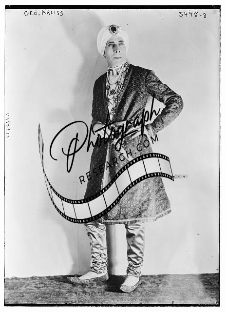 George Arliss,Sultan costume,actor,author,playwright,swords,clothing,turban,men