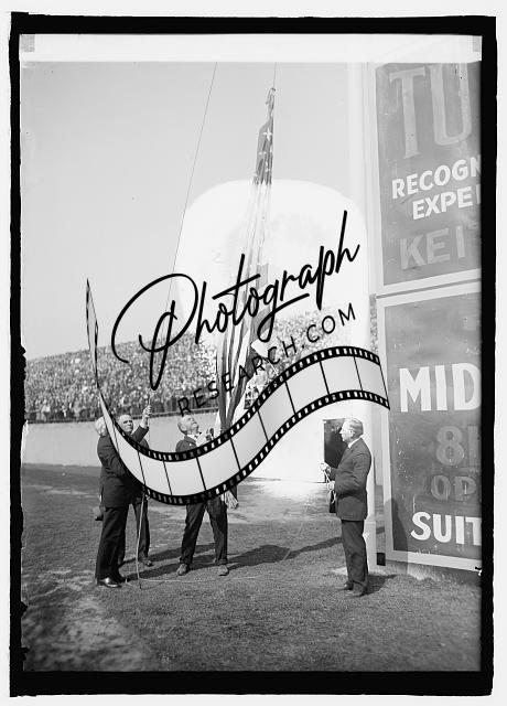 Frank B. Kellogg raising flag at opening game,4/22/25,Baseball Game,1925