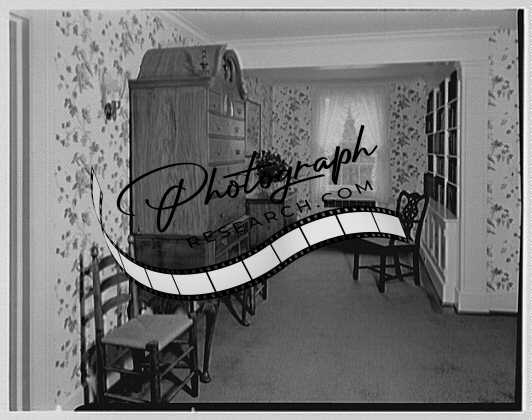 Title: Mrs. Harold I. Pratt, residence on Shutter Lane, Oyster Bay Cove, Long Island. Dining room, to portrait