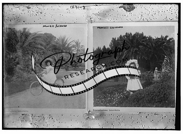 Princess Jolanda on bicycle,Princess Giovanna in garden holding flowers,children