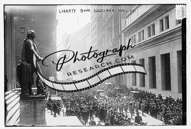 Liberty Bond salesman,Wall Street,American flags,statue,crowded street,Bain News