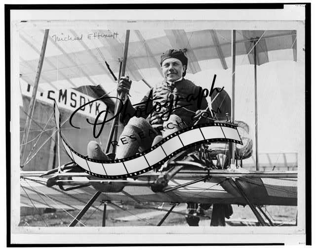 Mikhail Effimov,Russian aviator,seated on airplane,c1910,smiling
