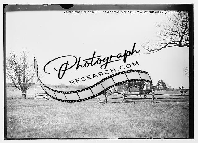Jumpers at Cedarhurst Cup Race,won by 'Ringlets',horseback riders,fence,1909