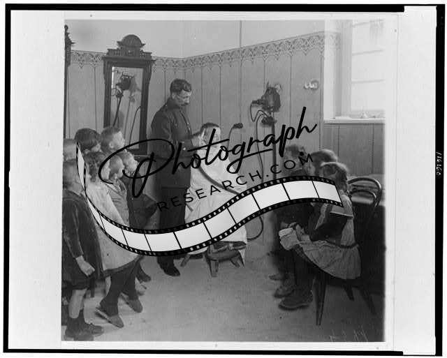 Children getting hair cut,community non-profit hair cutting shop,Germany,c1925