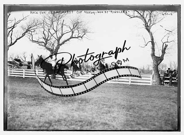 Jumpers at Cedarhurst Cup Race,won by 'Ringlets',horseback riders,fence,1909