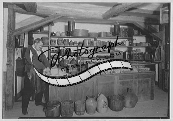 Title: Mrs. Lawrence J. Ullman, Heritage House, business on Prospect Ave., Tarrytown, New York. Close-up, Mr. Bean in store doorway