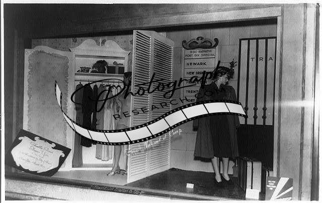 Split display,women,Franklin Simon Co,store,mannequins,corset,robe,clothing,1942