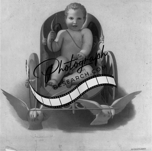Cupid on an airborne chariot pulled by two doves,bow,god of desire,affection