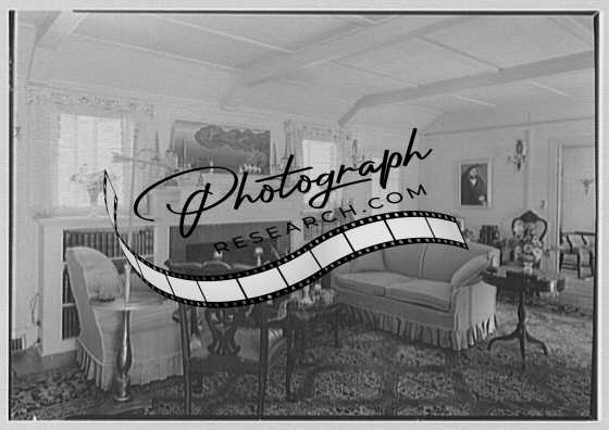 Title: Mrs. Robert Osburn, residence on Deer Park Rd., New Canaan, Connecticut. Living room, to porch