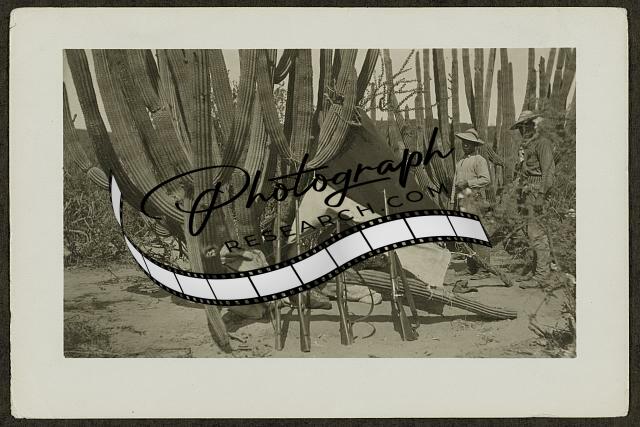 Tent,rifles,two men surrounded by cacti during the Mexican Revolution,1911-14