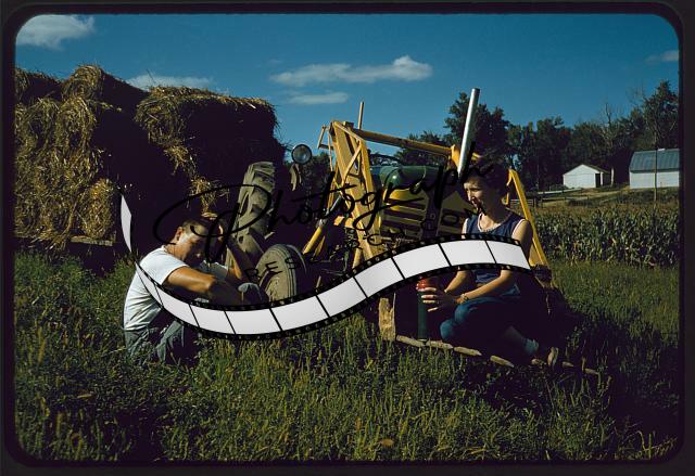 Mr,Mrs Willis Cooper,break,hauling hay bales,farm,Radcliffe,Iowa,IA,1957