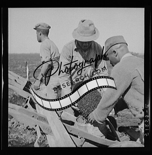 Title: Tractor-driven combination bean planter and fertilizer machine used on many large tracts of land in Florida farming area. Muckland around Lake Okeechobee, Florida