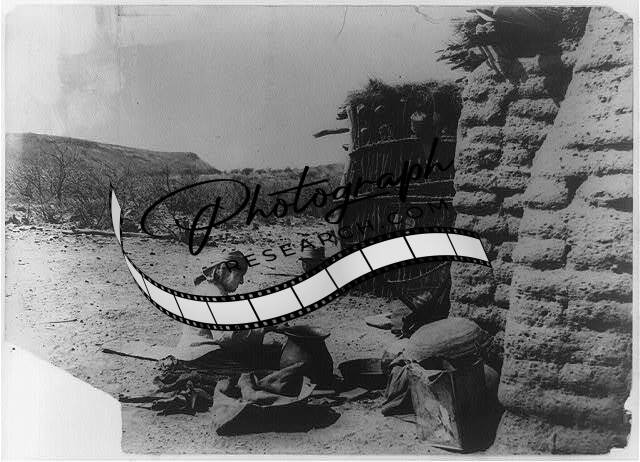 Papago Olla maker,Indians,adobe buildings,Tohono O'odham,crafts,pottery,c1900