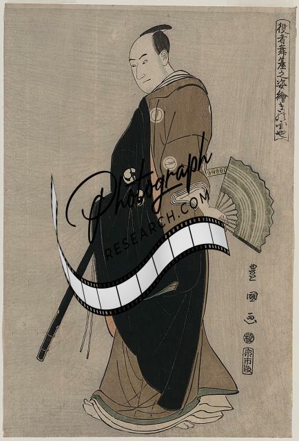 Summary: Print shows a head-and-shoulders portrait of the actor Miyamoto Musashi.
