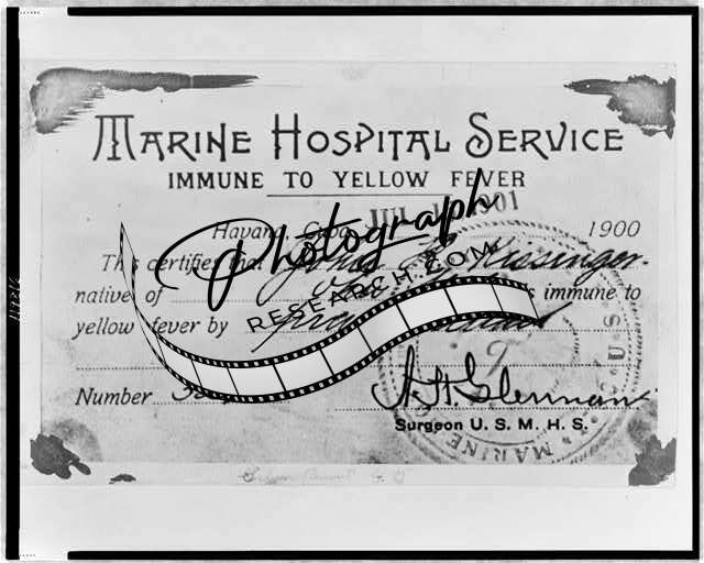 Photo of Marine Hospital Service Certificate,John Kissinger,Yellow Fever,1901