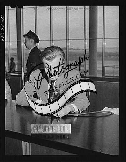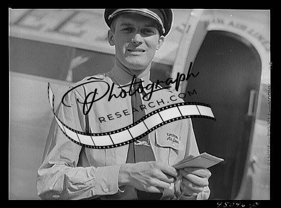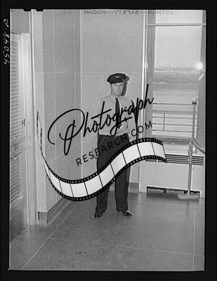 Title: 'Skycaps' at the entrance to the administration building. Municipal airport, Washington, D.C.