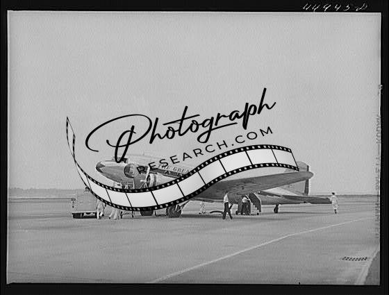 Title: Oil for the engine of an airliner preparatory to takeoff. Municipal airport, Washington, D.C.
