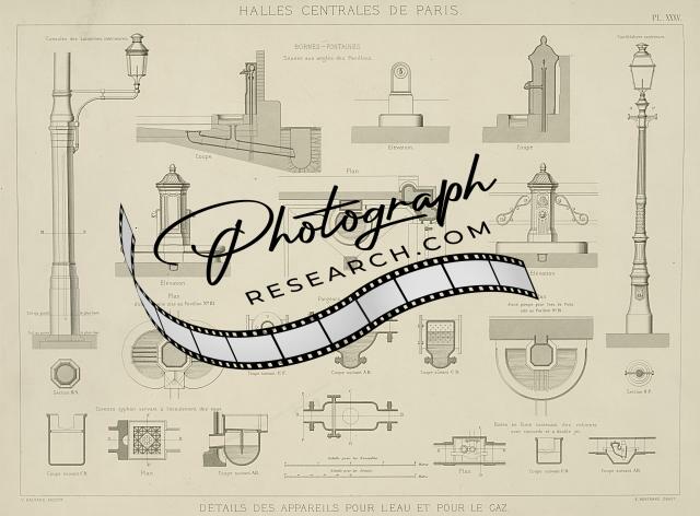 Halles centrales de Paris - details des appareits pour l'eau et pour le gaz,1863