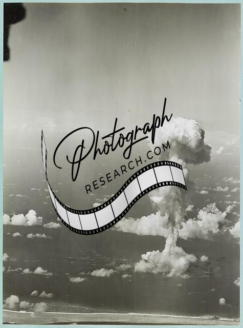 Title: [Mushroom cloud with ships below during Operation Crossroads nuclear weapons test on Bikini Atoll]