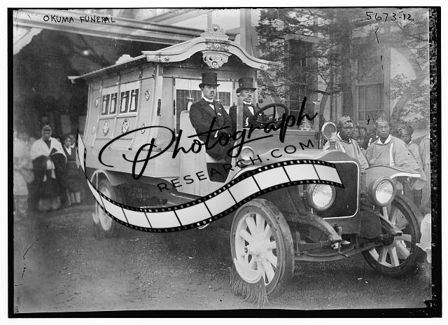 Okuma Funeral,processions,ceremonies,automobiles,vehicles,cars,Bain News Service