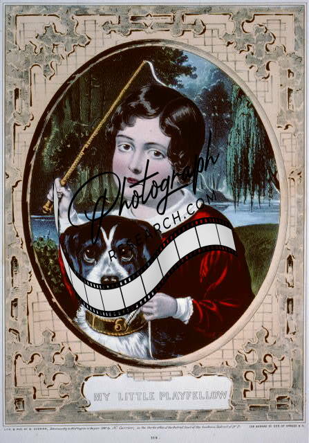 My little playfellow,little boy,pet dog,child,N. Currier,c1847