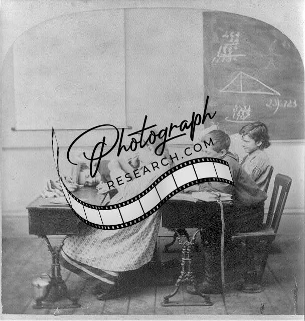 In disgrace at school,c1875,Boys teasing girl in classroom,students,blackboard