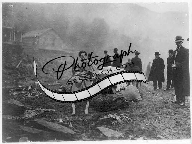Woman sitting by her salvaged household effects during Flood of 1911,Austin,PA
