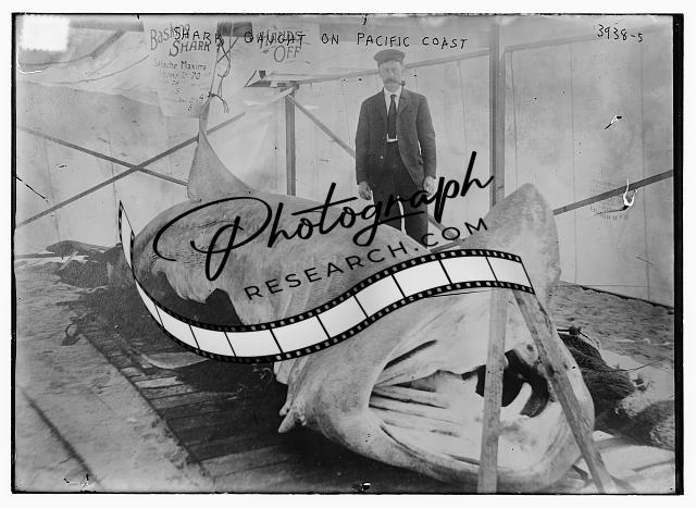 Shark caught on Pacific Coast,man smoking pipe,Bashing? Shark,Bain News
