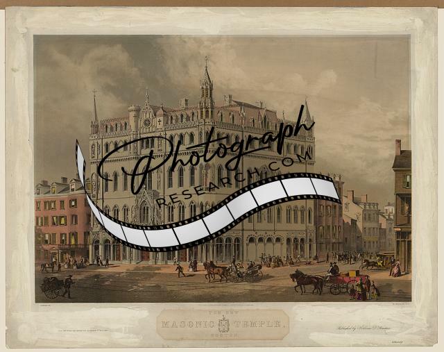 The New Masonic Temple - Boston,Massachusetts,MA,horse drawn wagons,people