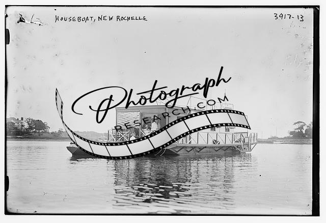 Houseboat,New Rochelle,people,out on the water,Bain News Service,rowboat