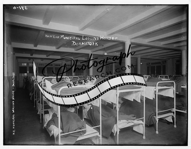 N.Y. Municipal Lodging House,New York,dormitory,people laying down,bunk beds