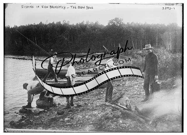 Fishing in New Brunswick -- the Bean Bake,shoreline,men,fishing pole,boats
