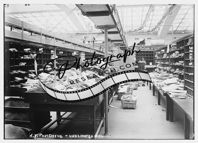 N.Y. Post Office -- unsorted mail,employment,mail,Bain News Service