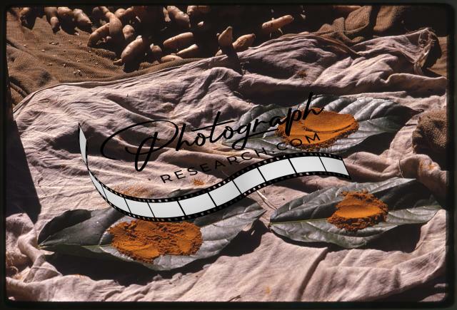 Selling spices on leaves in Bazaar,Gangtok,India,January 1970,Alice Kandell
