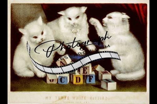 My three white kitties: learning their a.b.c.,letter blocks,cats,kittens,c1856