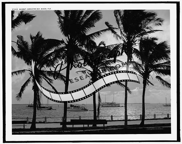 Sunset,Biscayne Bay,palm trees,Miami,Florida,FL,Detroit Publishing Company,c1910