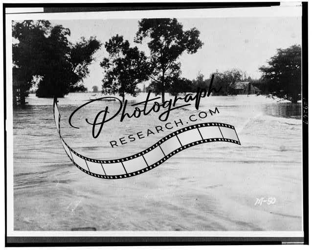 Partially submerged trees,swirling floodwaters, 1927 LA