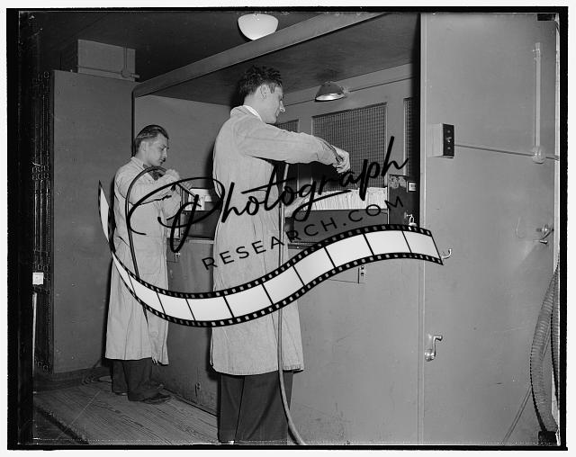 Title: National Archives. Washington, D.C., Nov. 22. After leaving the humidifying chamber, the documents are brought to the special ironers to take all remaining wrinkles out