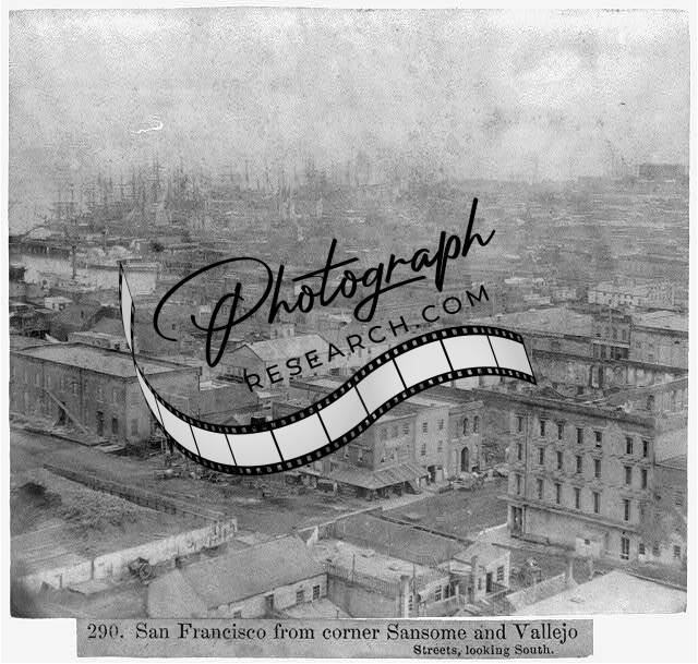 San Francisco from corner Sansome,Vallejo,looking South,California,CA,1866