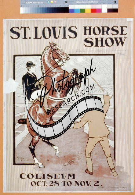 St. Louis Horse Show,Coliseum,1901,horse rearing,refusing to jump fence,photo