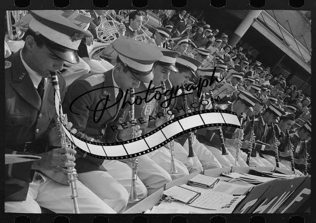Title: Member of Southwestern University band with instrument, National Rice Festival, Crowley, Louisiana