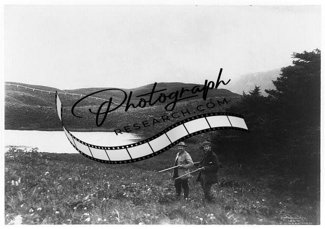 Men,guns,pond,mountain,exploration,Harriman Alaska Expedition,AK,E Curtis,c1899