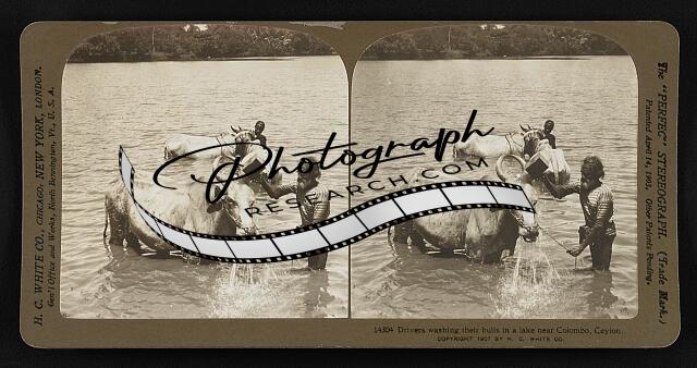 Drivers washing their bulls in a lake near Colombo, Ceylon