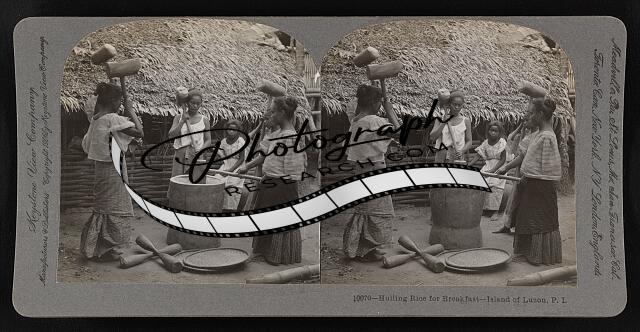 Hulling rice for breakfast, Island of Luzon, P.I.