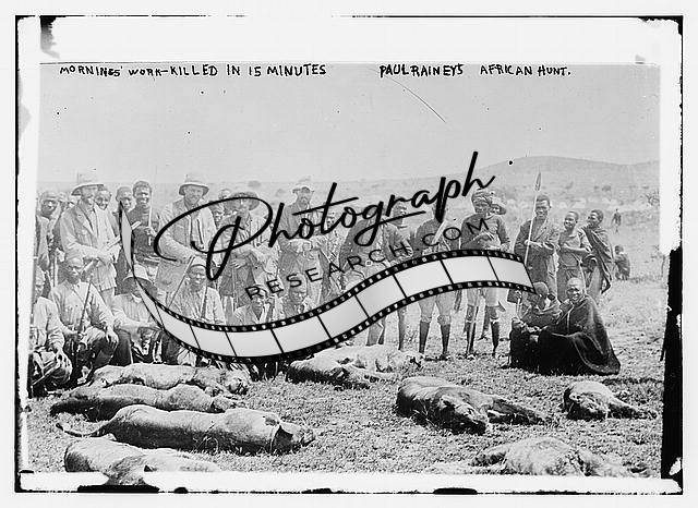 Mornings' work,killed in 15 minutes,Paul Rainey's African hunt,dead lions,c1912
