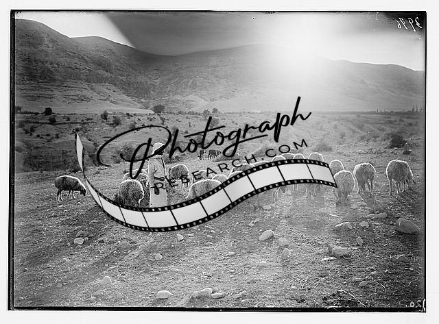 Sunset scene with sheep,shepherd,Jericho plain,Middle East,Agriculture,1920-1933