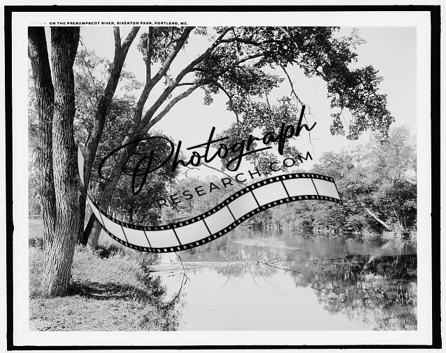Presumpscot River,water bodies,trees,Riverton Park,Portland,Maine,ME,c1910