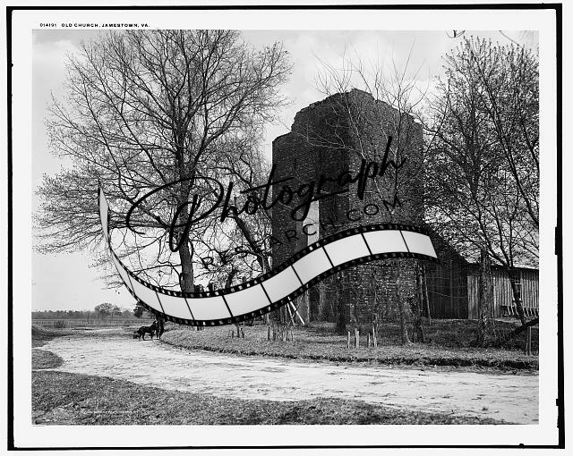 Old Church,religious buildings,ruins,stone structure,Jamestown,Virginia,VA,c1902