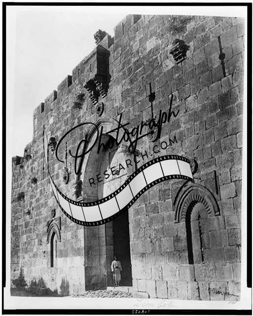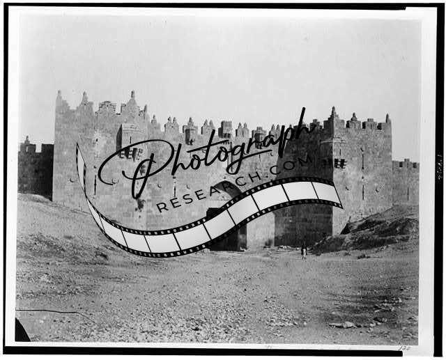 Damascus Gate,city walls,fortifications,stone work,arches,path,Jerusalem,1860