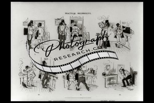 Practical reciprocity,cartoon,1891,2 book salesman,saloon,bartender,stealing